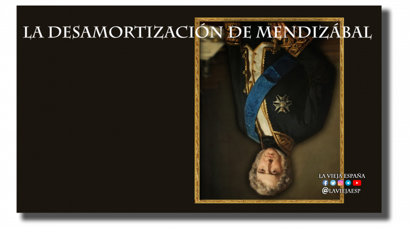 La mal llamada Desamortización de Mendizábal, fue una apropiación de los bienes de la Iglesia por parte del Estado, lo que hoy un dictador sudamericano llamaría expropiación. Con la excusa de acabar con las estructuras del tradicional régimen para modernizarlo en el liberalismo y dotar económicamente a un Estado en quiebra, en plena guerra civil durante la Primera Guerra Carlista en 1836, un siniestro personaje, que cambió su apellido, consiguió convencer a las fuerzas del Estado para llevar a cabo un plan económico que acabaría llevando a España a una mayor pobreza.