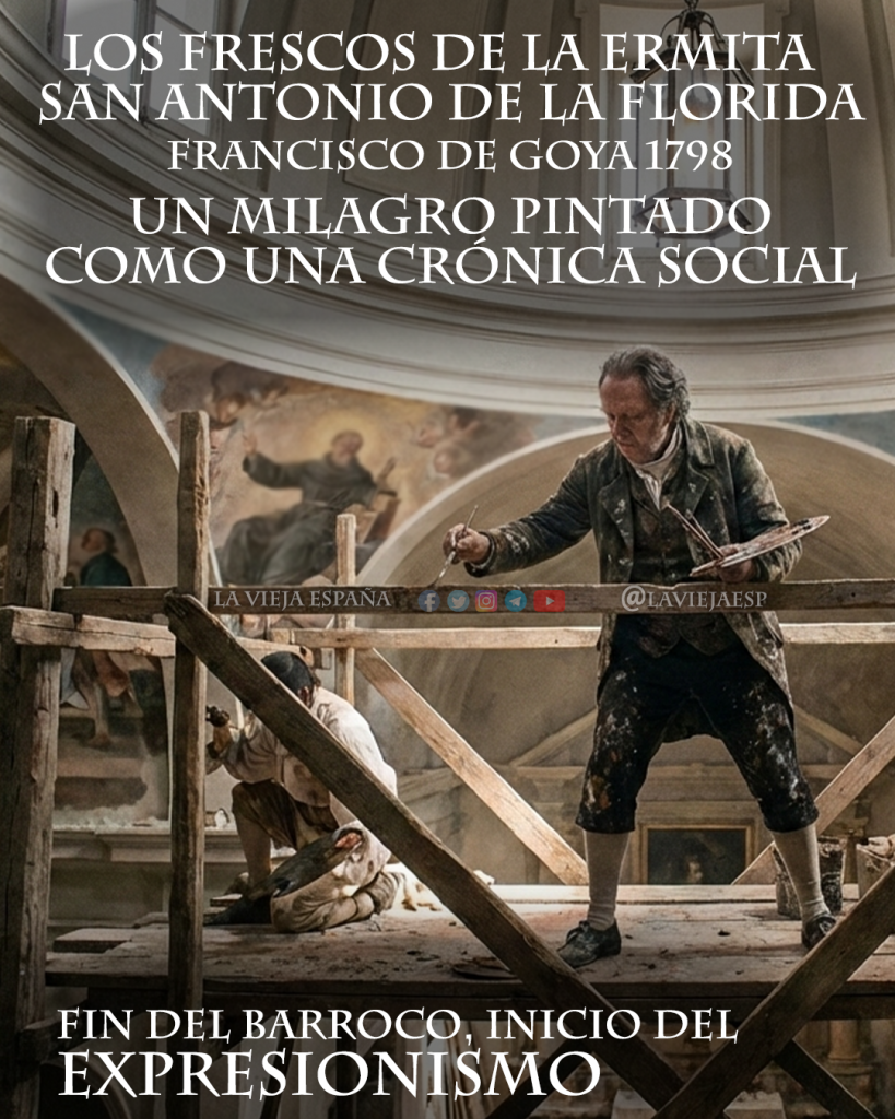 Realizados en un asombroso lapso de apenas tres o cuatro meses, estos frescos son el testimonio de un artista en la plenitud de sus facultades, que acababa de superar una devastadora enfermedad que le dejó sordo, pero que agudizó su visión interior y su audacia técnica. En San Antonio de la Florida, Goya rompió con las convenciones iconográficas y estilísticas de su tiempo para ofrecer una interpretación revolucionaria de un milagro religioso, transformando una escena sagrada en una crónica social vibrante, humana y profundamente madrileña. Esta obra es una lección magistral de composición, libertad de pincelada y profundidad psicológica que anticipa movimientos como el Impresionismo y el Expresionismo casi un siglo antes de su aparición oficial.