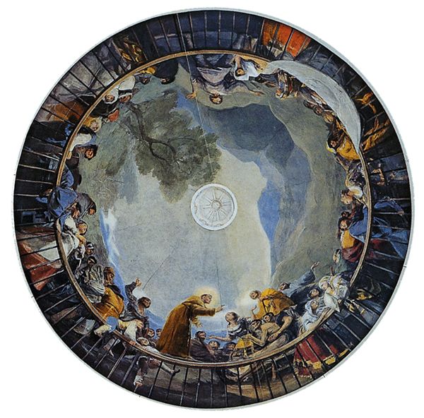 La genialidad de Goya en San Antonio comienza con su decisión sobre qué pintar y, sobre todo, dónde pintarlo. La tradición barroca dictaba que las cúpulas debían representar «la Gloria»; cielos abiertos con la Santísima Trinidad, la Virgen, santos y coros de ángeles en una apoteosis celestial distante del espectador. Goya invirtió radicalmente esta jerarquía.