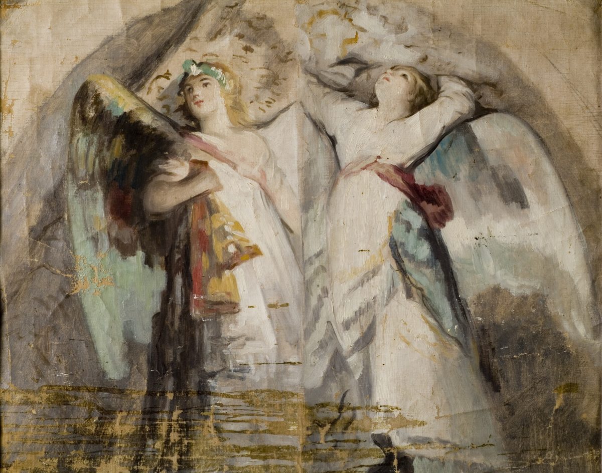 Goya relegó lo celestial a las zonas inferiores y arquitectónicamente secundarias. En el ábside (la bóveda sobre el altar mayor) pintó la «Adoración de la Trinidad», una escena teológicamente correcta pero tratada con menos intensidad. Más revolucionarias son las figuras de las pechinas (los triángulos curvos que sustentan la cúpula) y los paramentos laterales. Allí, Goya pintó ángeles y querubines. Pero no son los ángeles etéreos y andróginos del barroco. Son seres rotundos, carnales, con una presencia física casi escultórica. Especialmente notables son las «Ángelas» de las pechinas, figuras femeninas de gran belleza y sensualidad, vestidas con túnicas que parecen pesadas cortinas, que sostienen la estructura con una fuerza terrenal. Estas figuras femeninas rompían con la tradición teológica que solía representar a los ángeles como figuras masculinas o asexuadas, demostrando la libertad con la que Goya interpretaba los temas religiosos.