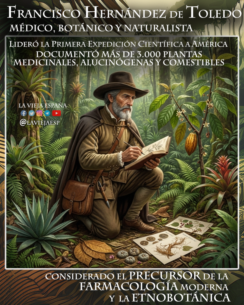 En 1570, Felipe II, imbuido del espíritu del Renacimiento y del deseo de explotar los recursos desconocidos de América, entendió que el poder de un imperio también residía en sus raíces, flores y resinas, por lo que le encargó una misión sin precedentes: la Primera Expedición Científica al Nuevo Mundo. Las instrucciones eran claras y ambiciosas: