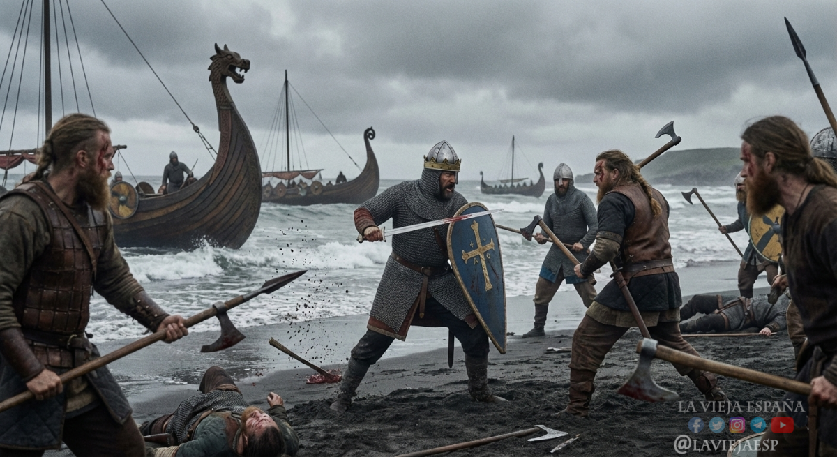 Mientras que los vikingos llevaban hachas y protecciones de cuero, la élite de Ramiro portaba cotas de malla y espadas de tipo carolingio, más pesadas y eficaces en el combate cuerpo a cuerpo prolongado. Fue una derrota catastrófica para los nórdicos. La Vara de la Justicia había enviado un contingente que no buscaba negociar, la orden era el exterminio de los invasores. Se estima que miles de vikingos cayeron en las playas y campos cercanos a Coruña. Todo lo que habían saqueado en incursiones previas quedó en Asturias.