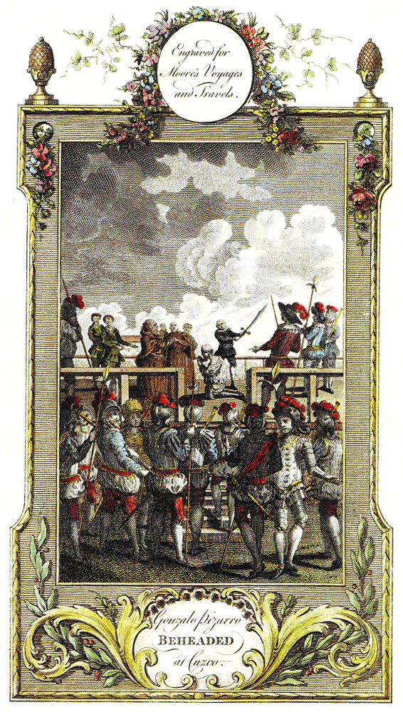 Ilustración del siglo XVIII que representa la decapitación de Gonzalo Pizarro