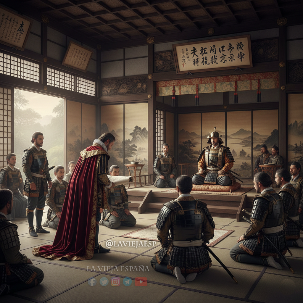 Pasó meses buscando las islas míticas en el Pacífico, pero no encontró nada más que tormentas, vientos adversos y un mar vacío. Las «Islas de Oro y Plata» simplemente no existían. Eran un mito cartográfico o, como mucho, islotes rocosos sin valor que no ofrecían refugio. Su barco resultó gravemente dañado y se vio obligado a regresar a Japón para reparar la nave. Allí, se unió a la famosa embajada de Hasekura Tsunenaga, el samurái enviado a España y Roma.